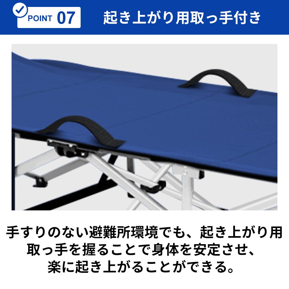 災害時の避難生活でのストレスの一つ、睡眠環境の課題を解決!耐荷重300kgの丈夫な設計 かつ 簡単設置・コンパクト収納ができる折り畳み式の簡易ベッドです。