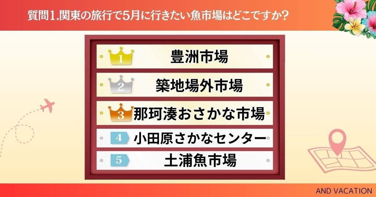 そこで、5月に旅行で行きたい関東の魚市場はどこか、アンケートで聞き取り調査をしました。ぜひ、チェックしてみてください!