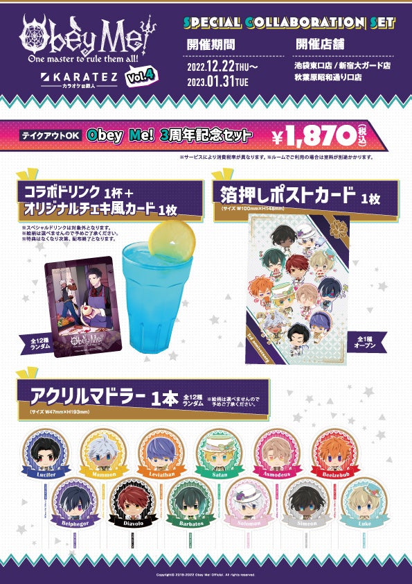 2022年12月22日より開催!『Obey Me!』×カラオケの鉄人コラボレーションキャンペーンvol.4開催のお知らせ