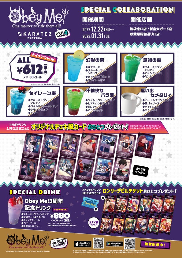 コラボ特設ページ:https://www.karatetsu.com/animegame/obeyme4.shtml