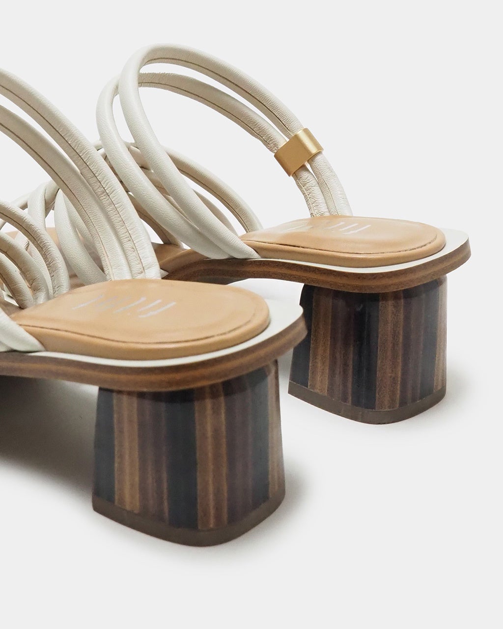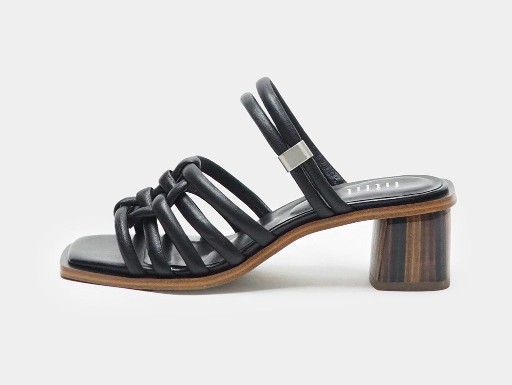 1.やわらかいスポンジをシープレザーで1本1本包み、美しく編み込んだストリングサンダルです。素材のやわらかさ、足をホールドする位置、アウトソールの仕様など細部まで計算されているため、華奢で可憐な見た目と履き心地の良さで想像以上の満足感をもたらします。また、金具の位置を変えるだけで、ミュールにもバックベルトにも変化できる2WAY仕様です。