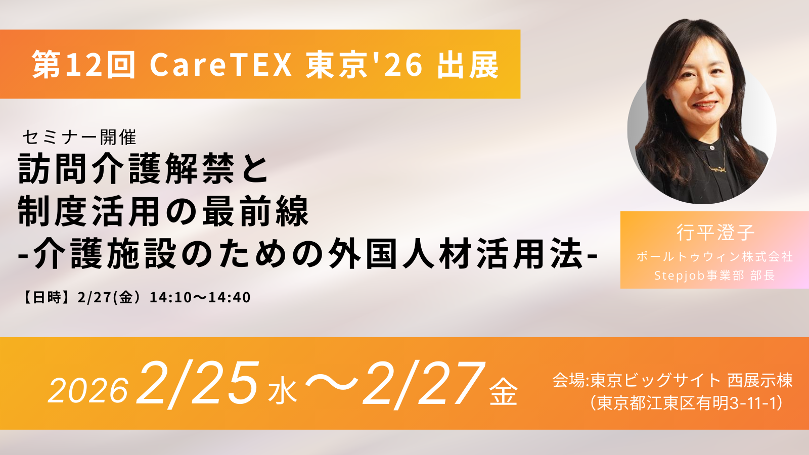 【CareTEX 東京'26 出展】外国人介護人材の活用を支援 介護施設に向けた人材受け入れの最新情報のセミナーも開催