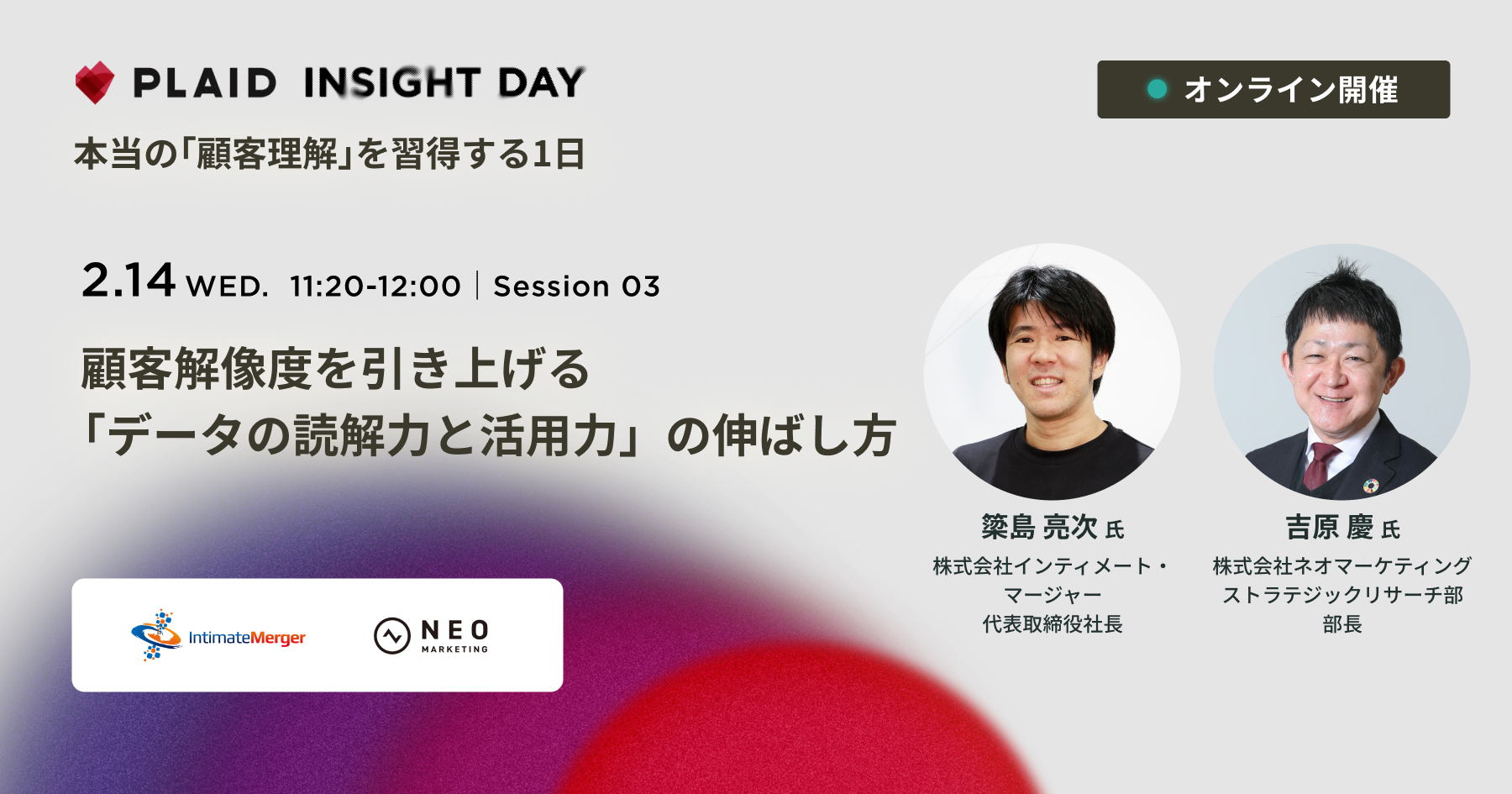 当社の代表取締役社長・簗島亮次は、株式会社ネオマーケティング ストラテジックリサーチ部部長・吉原慶氏と「顧客解像度を引き上げる「データの読解力と活用力」の伸ばし方」をテーマに11時20分よりセッションします。是非この機会にご参加ください。