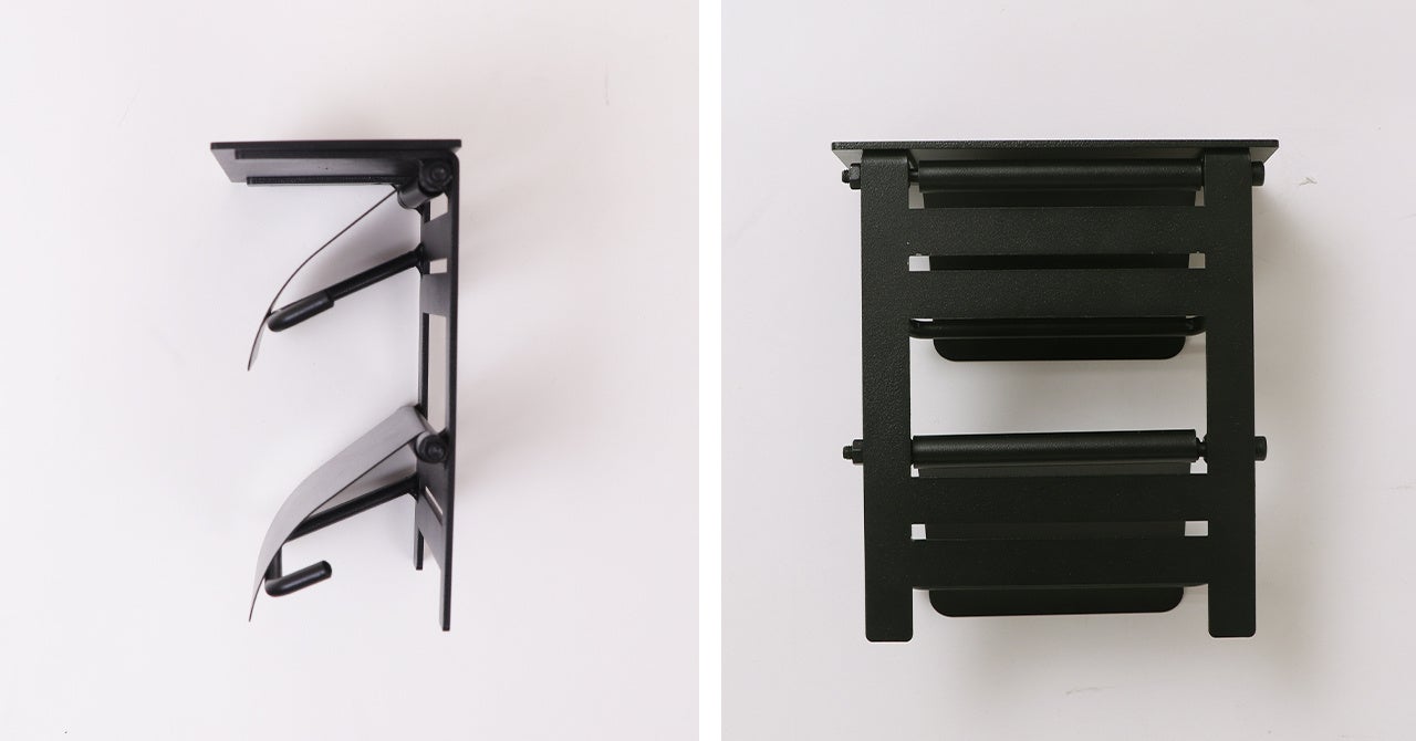 2つのトイレットペーパーがセットでき、コンパクトで狭い空間にもフィットする2連縦型タイプです。ペーパーは右から差し込んで簡単に補充ができるのでお子様でもお手伝いができます。ペーパーを差し込むホルダーは端がL字になっており、落ちにくい構造をデザインにしています。