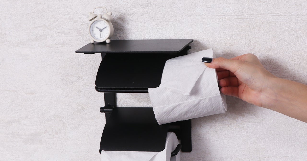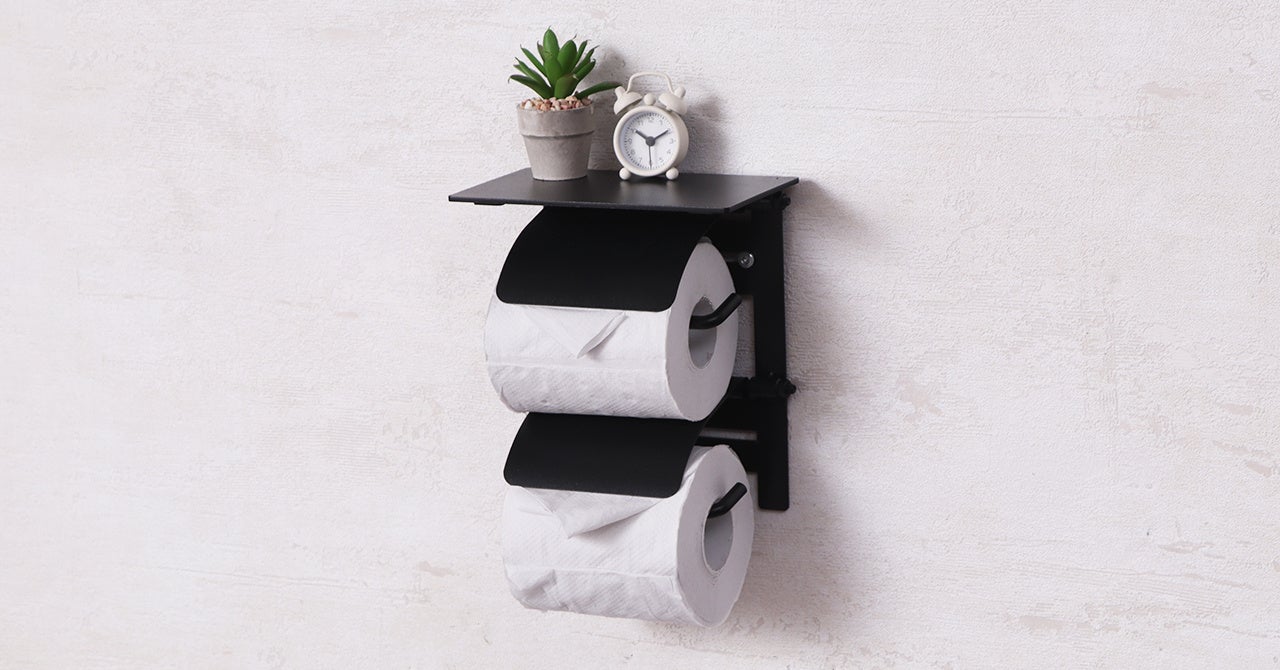 飽きの来ないシンプルなデザインで、実用性の高い天板付きの美しいトイレットペーパーホルダーです。