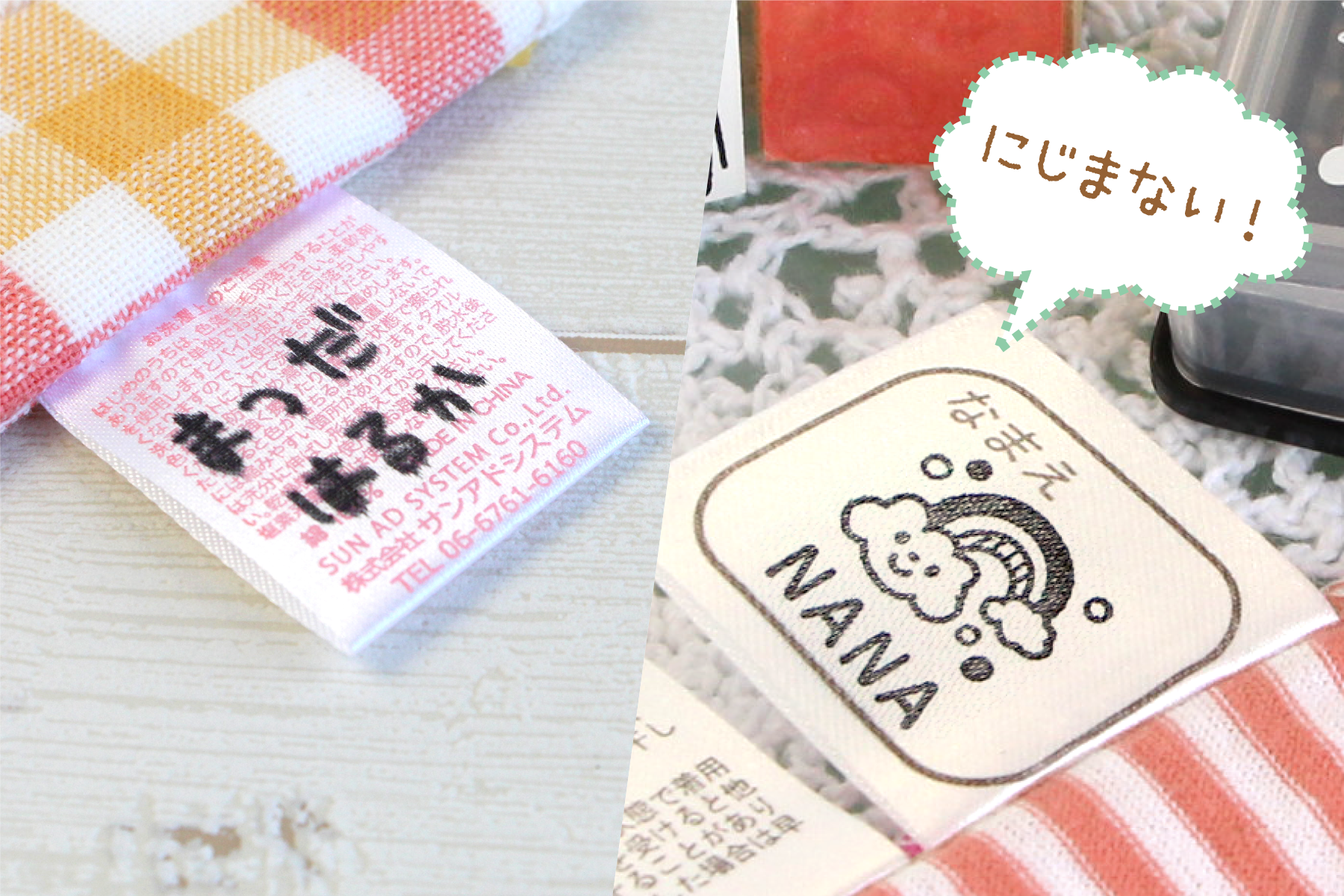 学参・旧字に対応した「丸ゴシック」からかわいい「手書き風」まで、全4種類のフォントから選ぶことができます。また、ひらがなだけではなく漢字やローマ字にも対応。付属のインクカラーも3色ご用意しておりますので、洗濯タグで目立つよう「ブルー」や「ピンク」のセレクトもオススメです。