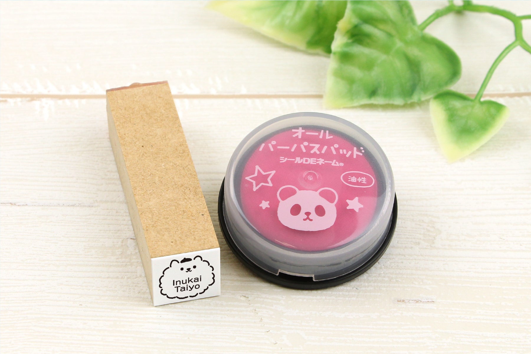 ■セット内容:お名前スタンプ1本(印面サイズ:13mm×13mm)、オールパーパスパッドmini(油性インク)