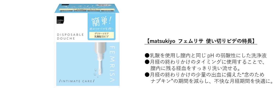 フェムケア特化ブランド「matsukiyo FEMRISA」から女性の月経時などの悩みに寄り添った「matsukiyo フェムリサ 使い切りビデ」4月11日より販売開始