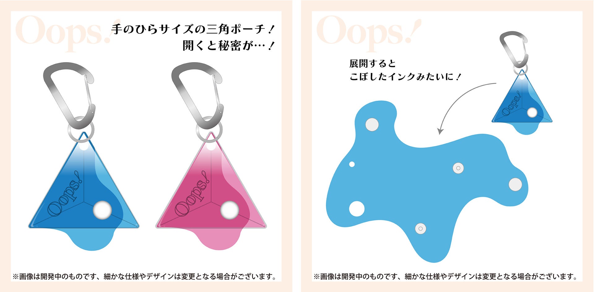 さんかくポーチ BL / PK (全2色) Oops! 各935円(税込)