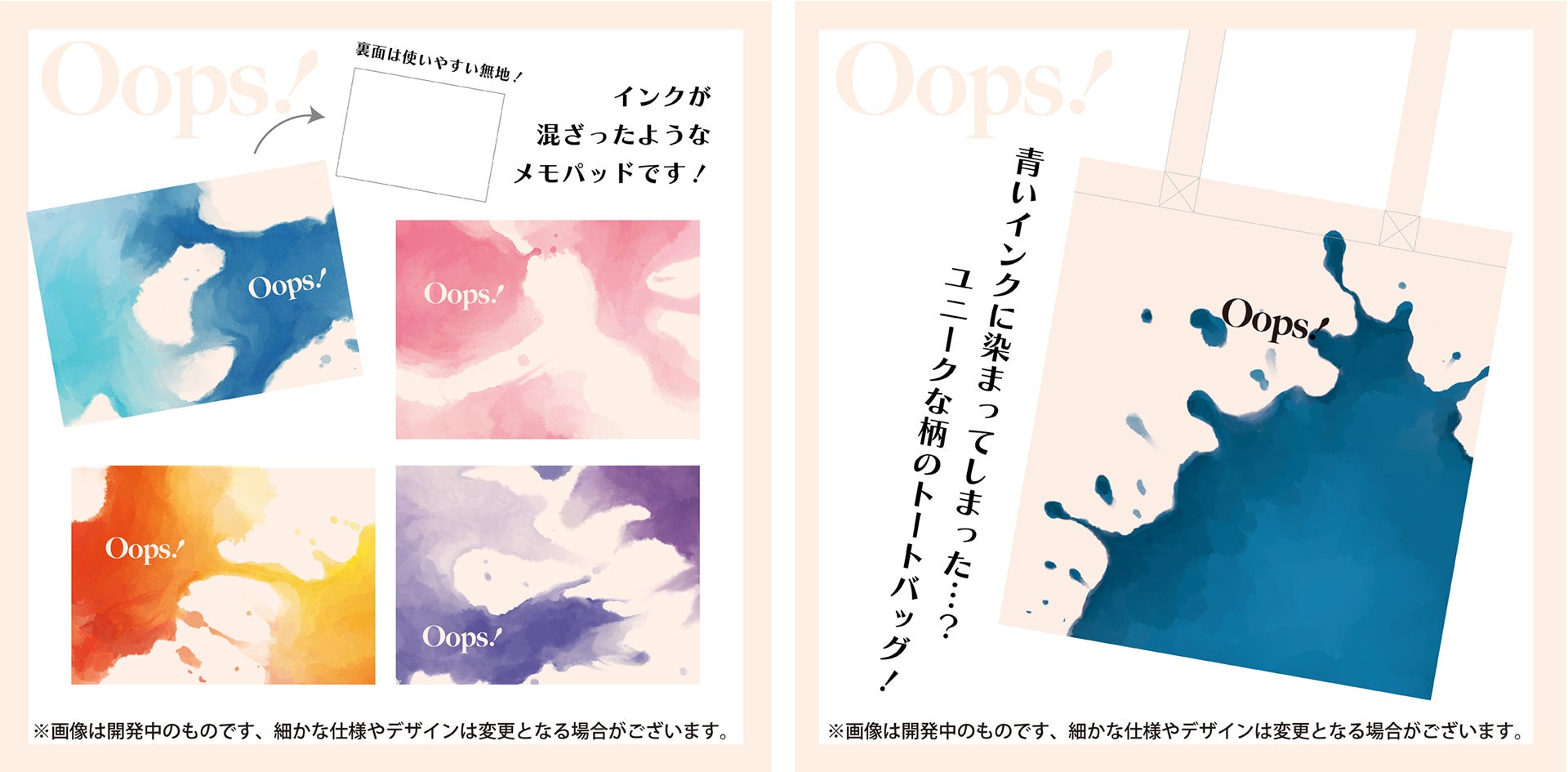 こぼれたインクをモチーフにした「Oops!」シリーズ
