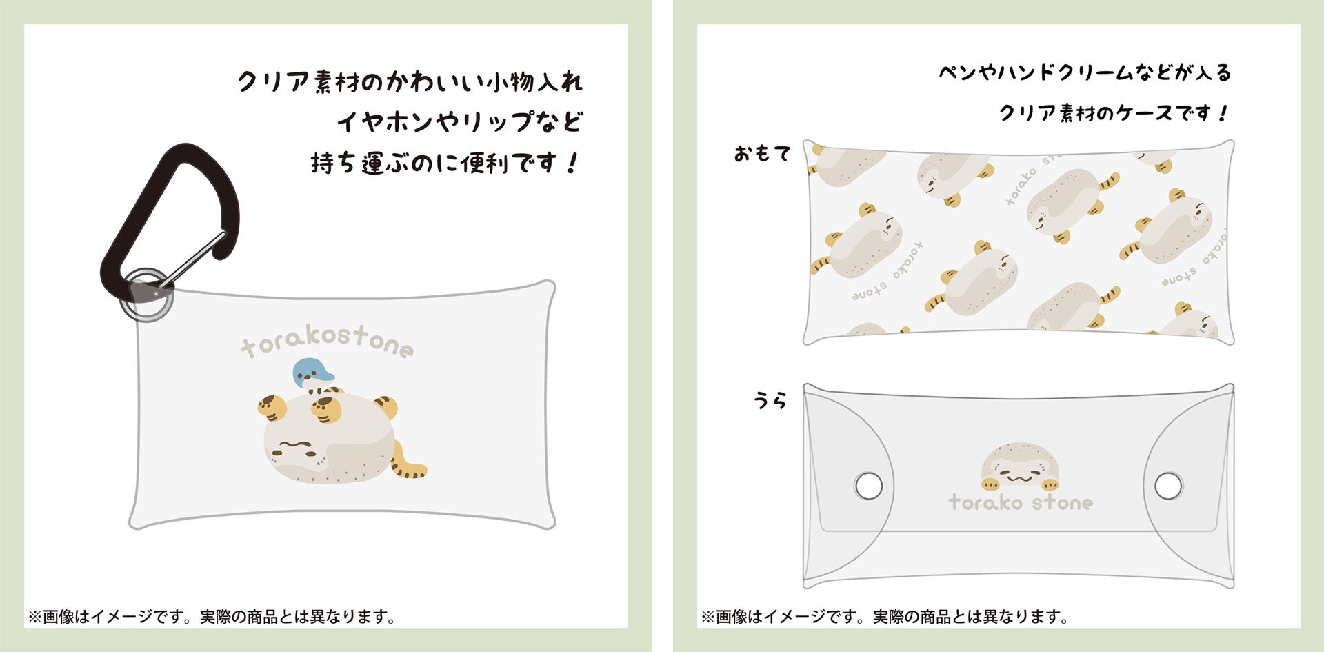 (左)クリアマルチケースS 虎子石 990円(税込)