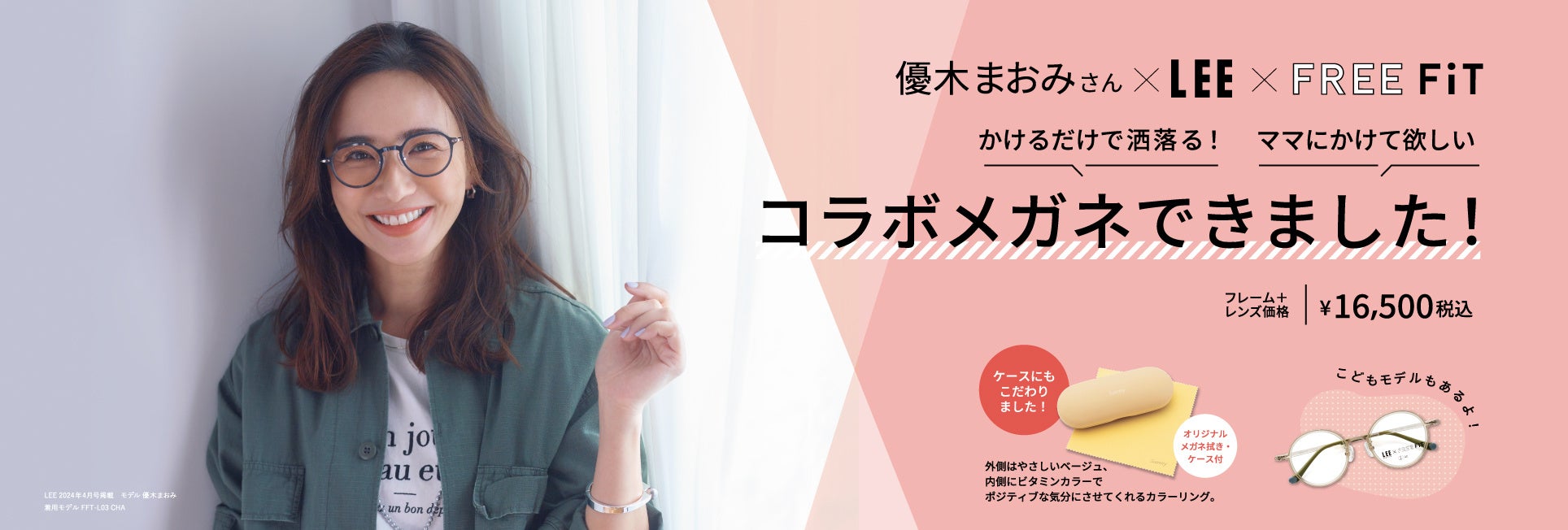 眼鏡市場は、心地よいおしゃれと暮らしを提案するファッション&ライフスタイルマガジン「LEE(リー)」と2児のママでモデルとしても活躍されている優木まおみさんとのコラボメガネを、眼鏡市場人気№.1のブランド「FREE FiT(フリーフィット)」より、全国の眼鏡市場店舗および眼鏡市場オンラインショップにて販売を開始しました。