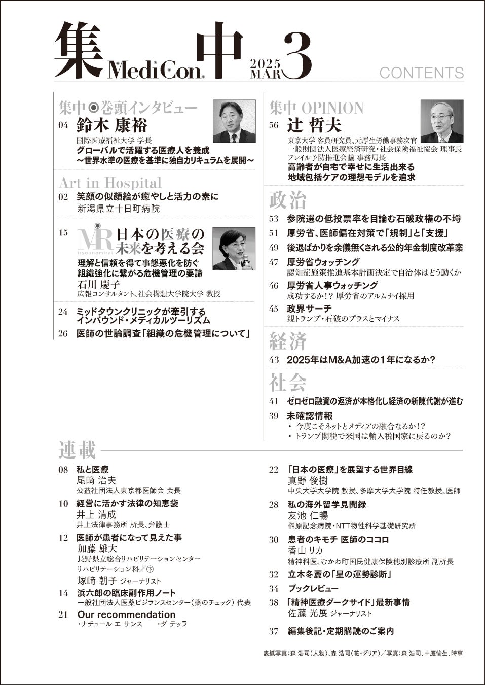 医療情報誌 月刊『集中』2025年3月号 巻頭インタビュー 鈴木康裕・国際医療福祉大学 学長/集中OPINION 辻 哲夫・元厚生労働事務次官 他