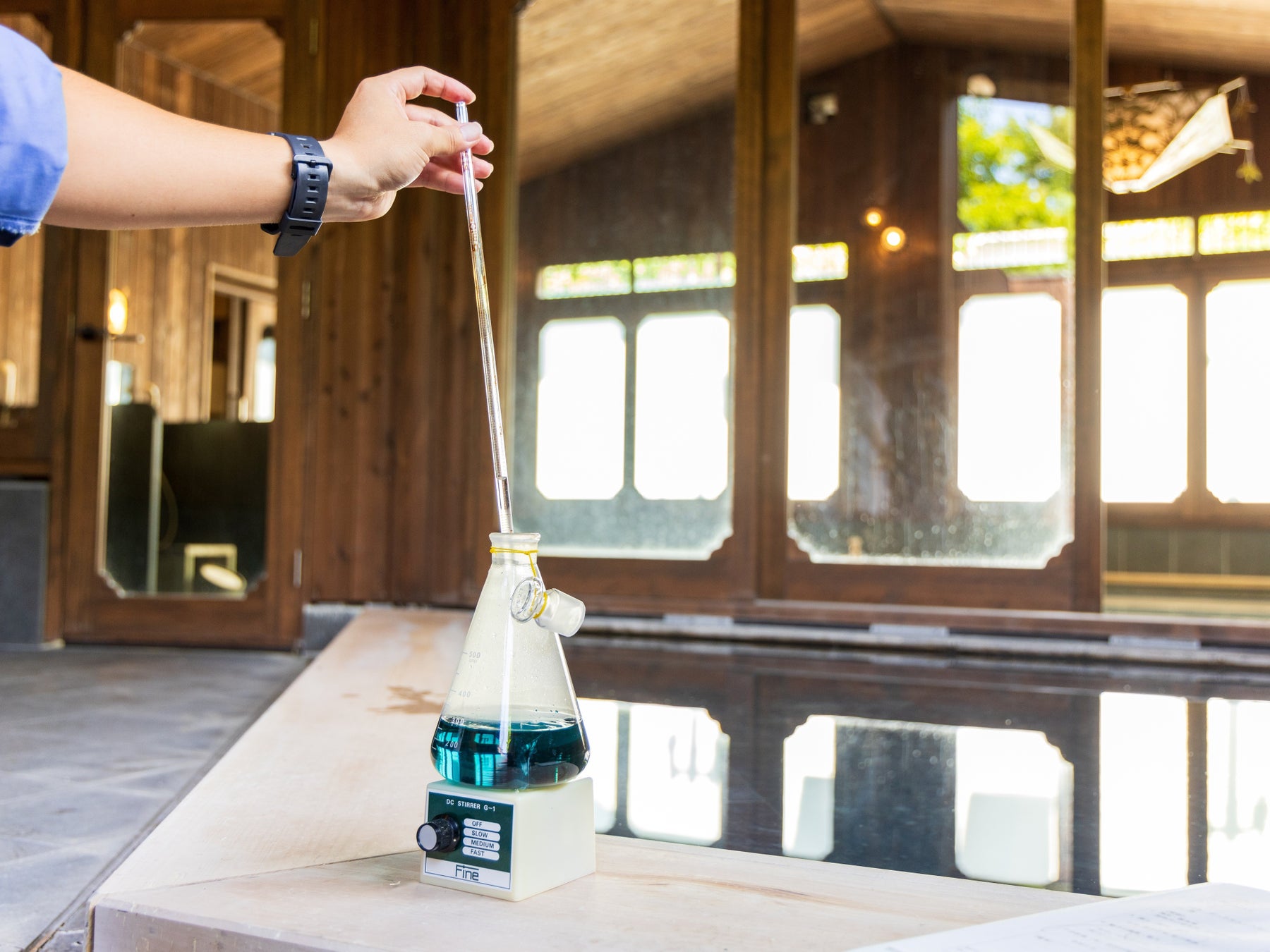 株式会社ポーラ・オルビスホールディングスの研究所は、2021年より温泉が肌に及ぼす影響を研究し、科学的なデータを取得して効能を訴求することを目的に、正確な美肌効果実証のために源泉ではなく利用者の肌に触れる浴槽に注がれる温泉水を採取し、「温泉成分」「温泉が角質に及ぼす影響」「温泉が皮脂に及ぼす影響」の分析および、7種類の美肌泉質の中から適合した泉質を認定する取り組みを行っています。