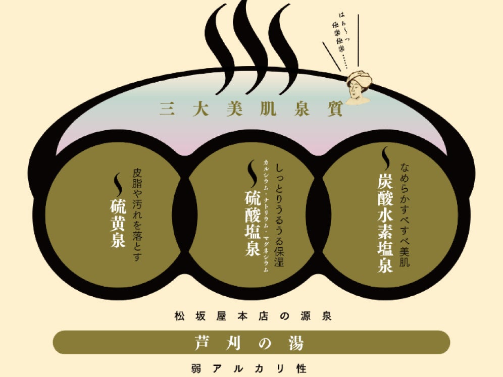 この度、松坂屋本店ではポーラ・オルビスオールディングスにて「美肌温泉証」を取得し、「メルティング浄化温泉」という、瑞々しくすべすべな肌をつくる効果がある温泉であると認定を受けることが出来ました。これにより私どもの温泉がもつ効能をさらに強調し、多くのお客様へ温泉の魅力を感じていただきたいです。