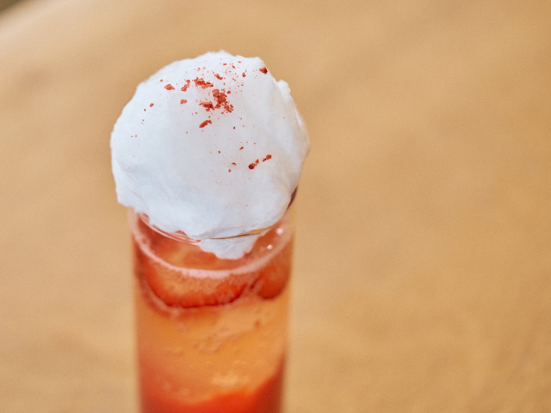 ほんのり甘いいちごソーダの上に、わたあめをトッピング。少しずつ溶かしながら飲むことで、甘さの変化を楽しめる新感覚のドリンク。見た目と味でお楽しみいただけます。