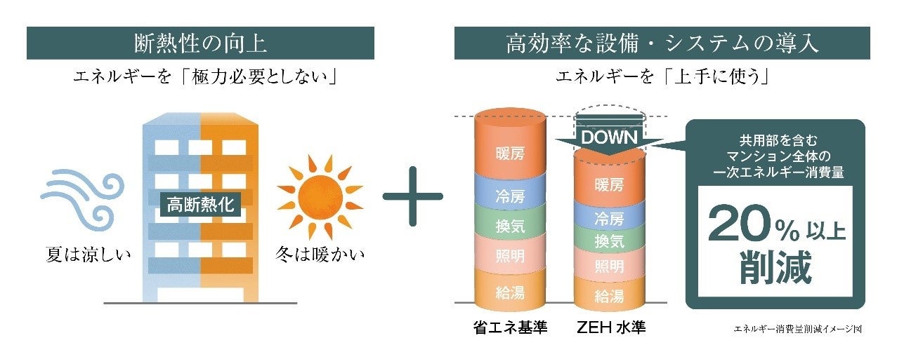 本物件は、省エネルギー性能基準である『ZEH-M Oriented』の採用を予定しており、これまでのZEH非採用の建物に比べて断熱性能が向上しています。外気温の影響を受けにくく、ヒートショックのリスクも軽減され、住戸内の快適性を高めます。また、高効率給湯器の採用などと併せて光熱費の低減も期待できます。