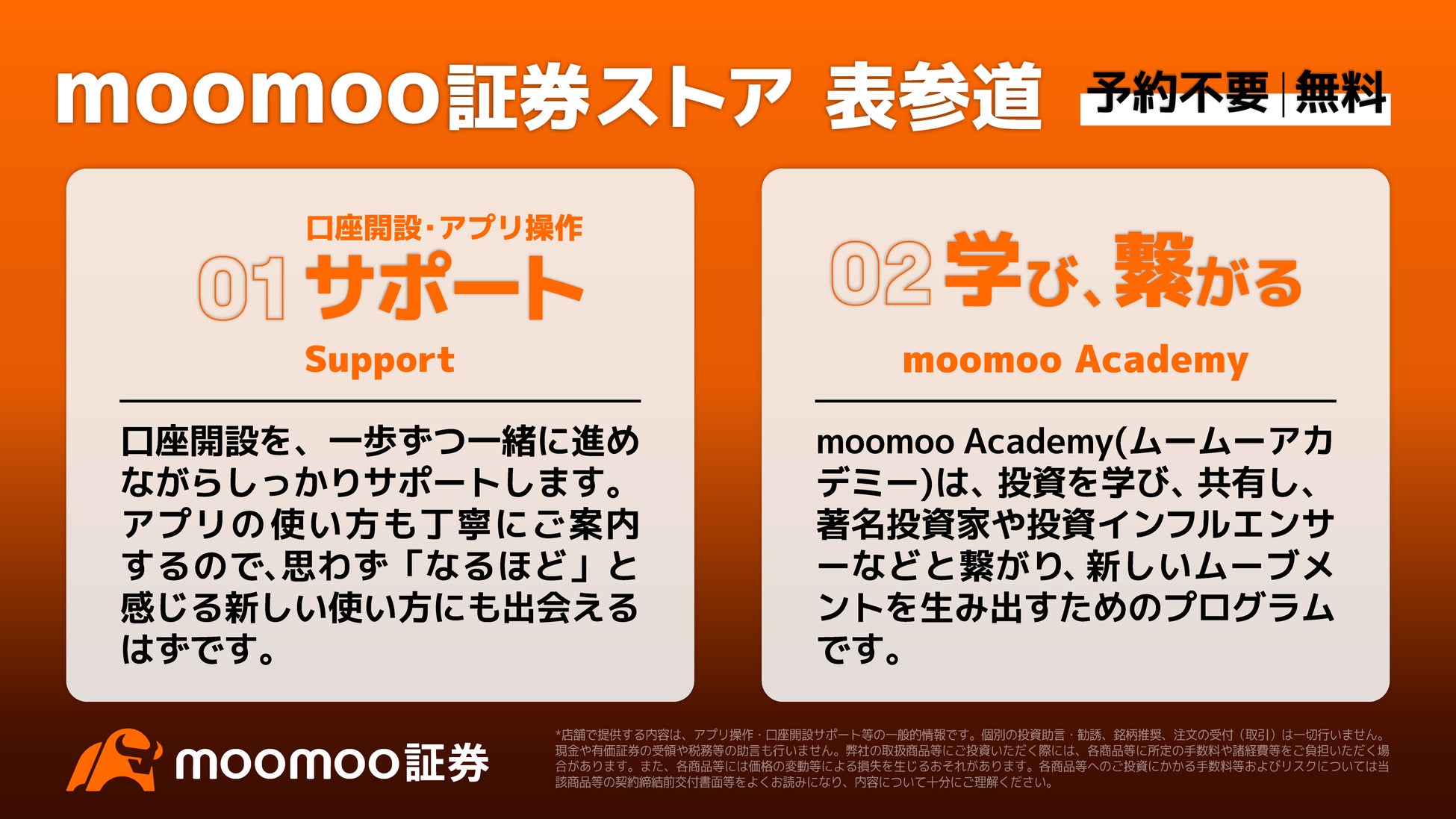 デジタルが当たり前になった時代だからこそ、私たちはリアルな場でしか得られない「安心感」と「繋がり」を大切にしています。近年、資産形成は誰にとっても身近なテーマとなり、2024年から始まった新NISAは非課税枠の拡大や制度の恒久化などを通じて、個人の投資環境を大きく後押ししています。moomoo証券は創業以来、金融教育と投資機会の民主化に取り組み、プロ水準の情報やツールを個人投資家に開放してきました。今回の「moomoo証券ストア 表参道」のオープンは、その理念をリアルの場にも広げ、投資をもっと身近で学びやすい存在にするための新たな一歩となります。