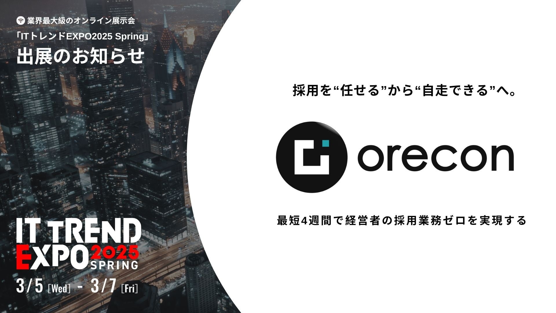 株式会社オレコン(本社:東京都港区、代表取締役:山本琢磨)は、イノベーション(東証グロース 証券コード:3970)のグループ会社である株式会社Innovation & Co.(東京都渋谷区、代表取締役:齊藤和馬)が主催する「ITトレンドEXPO2025 Spring」に出展します。この展示会は、業界最大級のオンラインイベントとして注目されています。