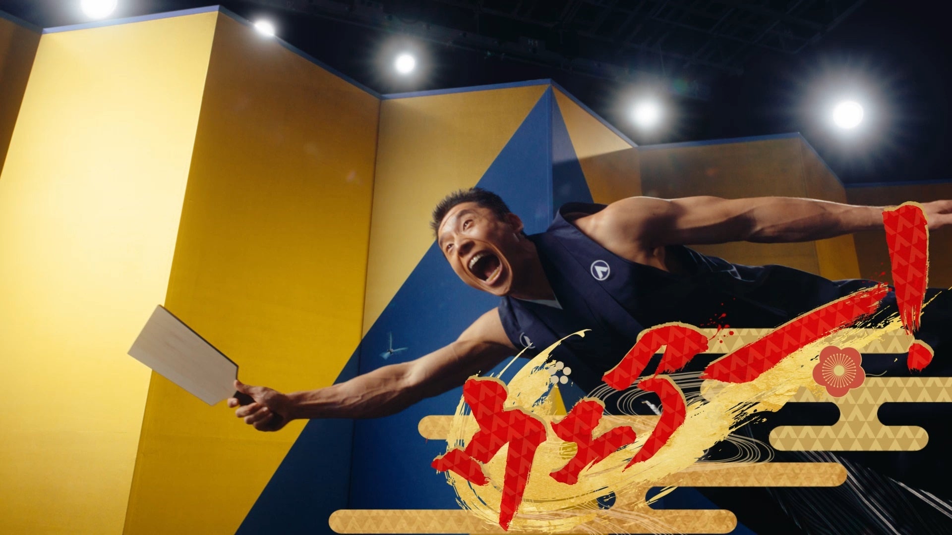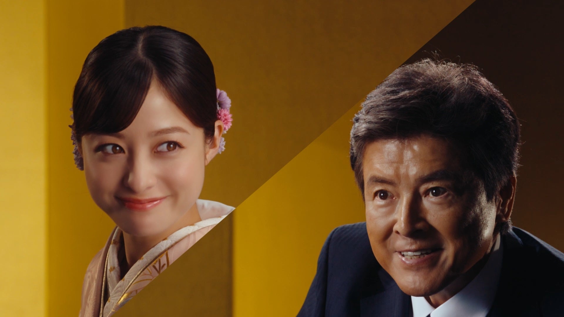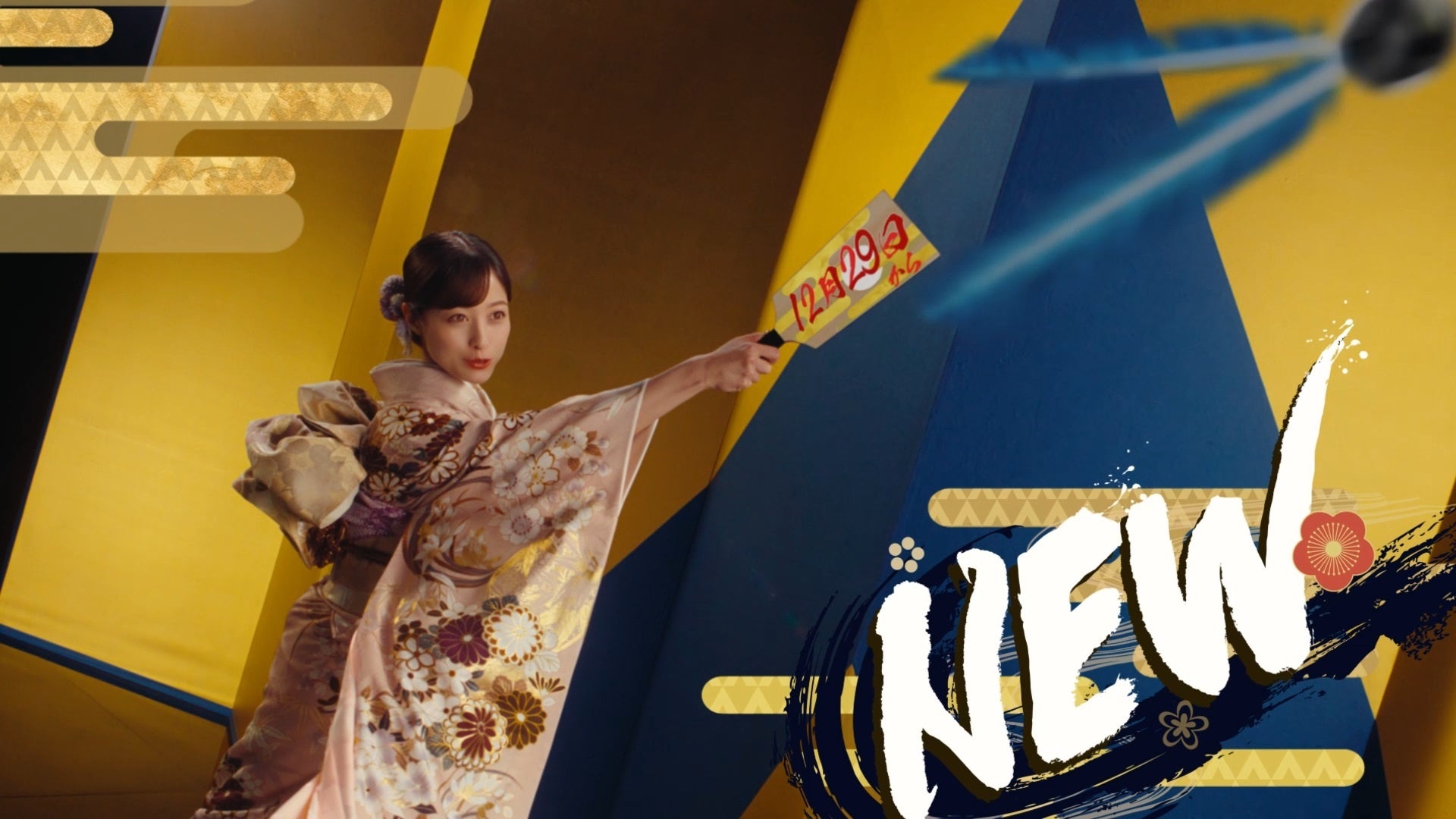 三浦友和さん、橋本環奈さん、なかやまきんに君さんの共演となった今回の初売りCMでは、お正月らしい金屏風の前で3人に羽子板遊びで勝負していただきました!三浦さんの凜として品格のあるスーツスタイルと環奈さんの華やかで可憐な振袖姿に、きんに君さんのインパクトあるノースリーブ羽織袴が加わり、今までよりさらにパワーアップした「洋服の青山60周年」に相応しい初売りCMになったのではないかと思います!