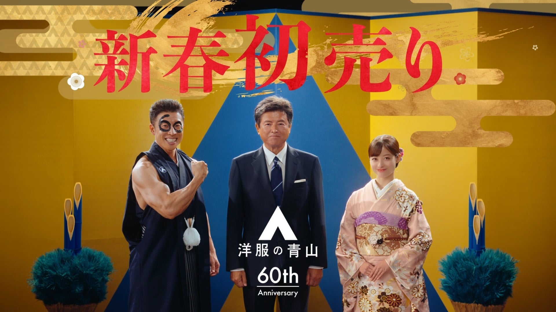 青山商事株式会社(本社:広島県福山市/代表取締役社長:青山理(おさむ))は、「洋服の青山」初売りCMキャンペーンキャラクターに三浦友和さんと橋本環奈さん、なかやまきんに君さんを起用し、初売り限定CM『師走篇』を12月29日(金)から12月31日(日)まで、『元旦篇』を1月1日(月)~1月4日(木)まで全国で放送します。