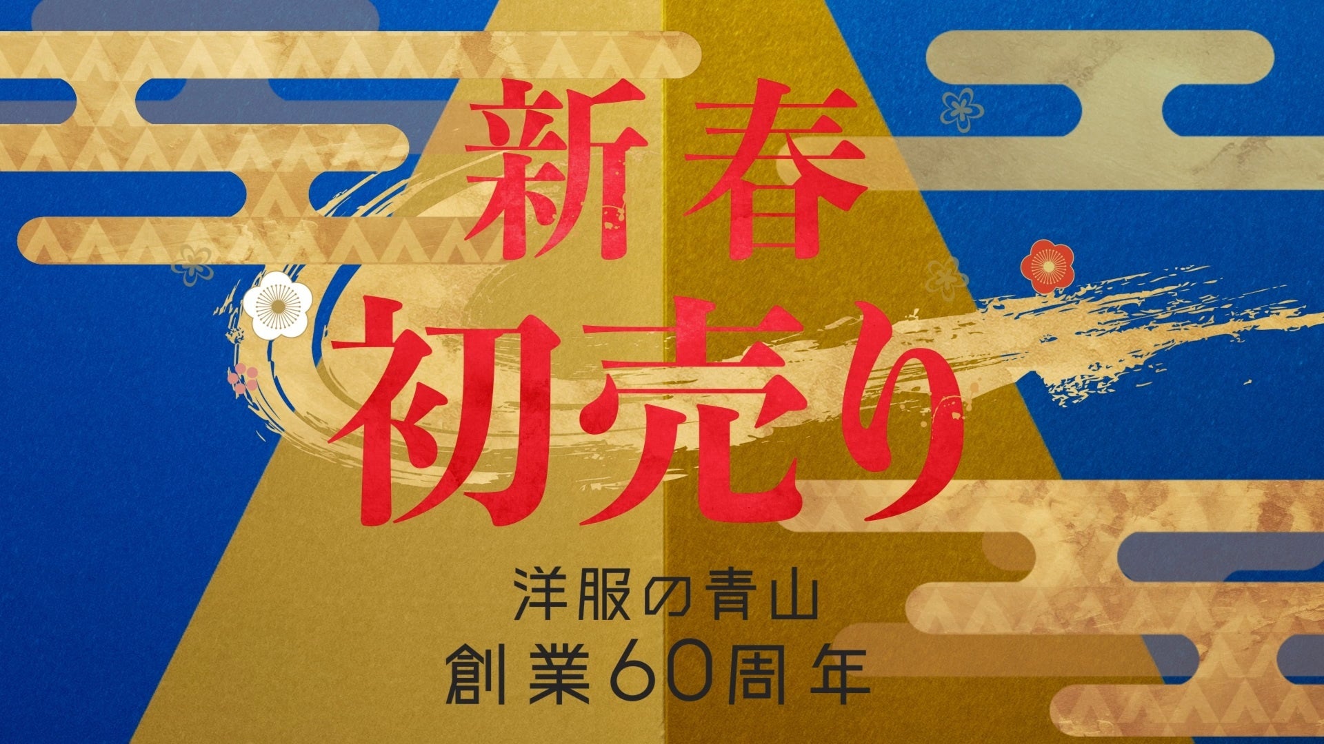 今回の初売り限定CMには、スーツをビシッと着こなしている三浦友和さん、華やかな振袖姿でお正月にふさわしい装いの橋本環奈さん、袴姿で肉体美を披露しているなかやまきんに君さんが登場します。羽子板遊びで「HAPPY」と三浦さんの掛け声からスタートし、環奈さんが「NEW」と打ち返し、最後「ウェアー(イヤー)」ときんに君さんが羽根に飛びつくものの惜しくも届かず、顔に墨でイタズラされるお正月らしいCMになっています。CM内では「洋服の青山」初売りセールを紹介しており、初売り限定の特設コーナーではスーツ・コートを半額で取り揃える他、元旦より人気ブランドの福袋もご用意します。