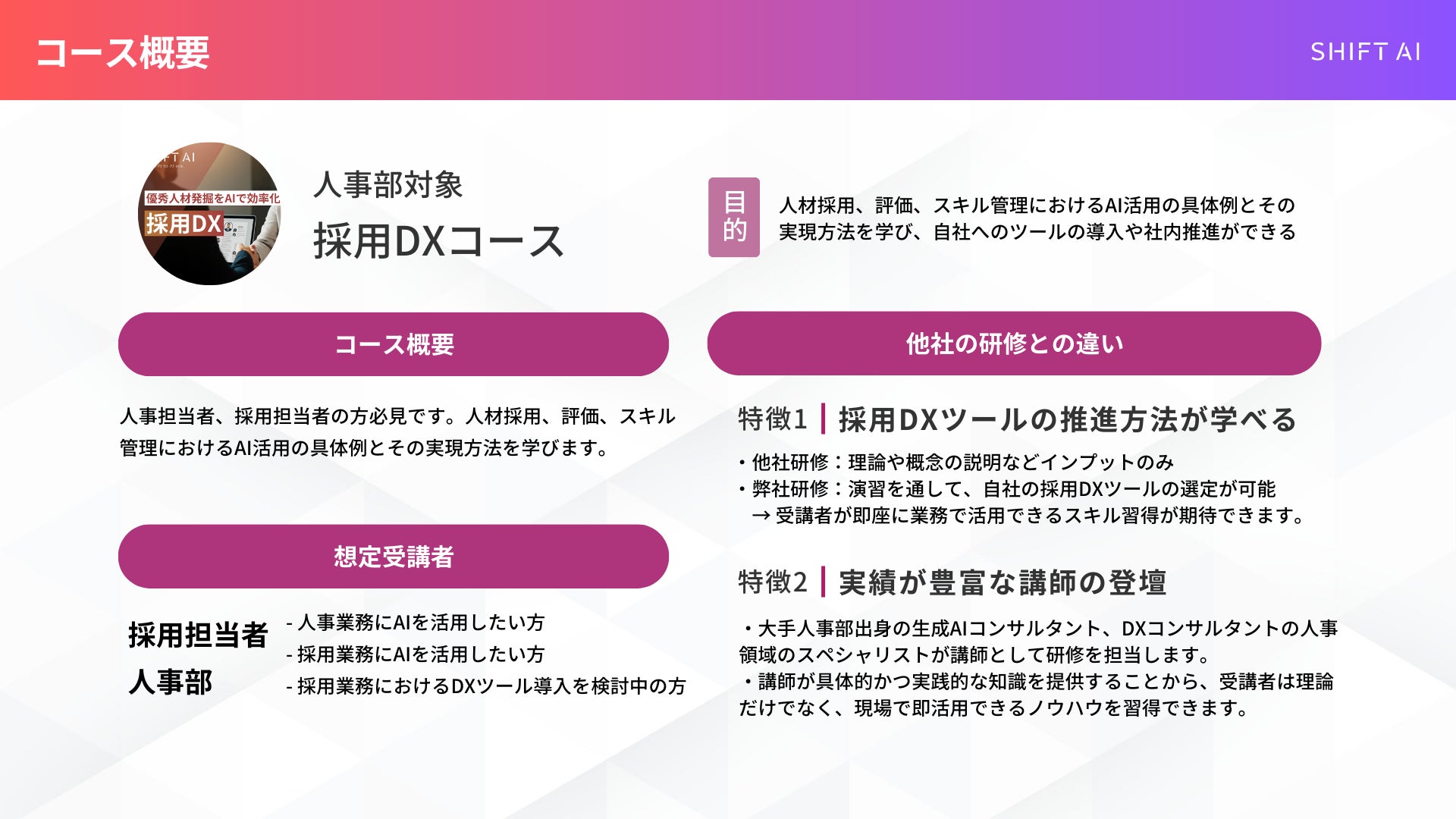 SHIFT AI 法人向け新サービス【採用DXコース】2025年3月より受付開始