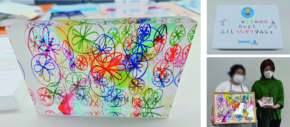 当日のメインプログラムとして、寺西化学工業による「マジックインキで絵を描こう」アートコンクールの表彰式が行われました。キンコーズ・上野店が選出した「キンコーズ・上野店賞」には、色彩やデザインがアクリル素材と高い親和性を持つ作品を選出し、当社の印刷サービス「アクリルフォト」に加工して贈呈しました。受賞者の発表と講評の場では、福祉施設利用者による作品の魅力を来場者へ具体的に伝える機会となりました。