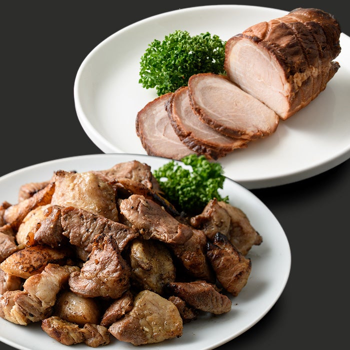 黒豚焼豚・黒豚炭火焼が入った人気商品2点セット。