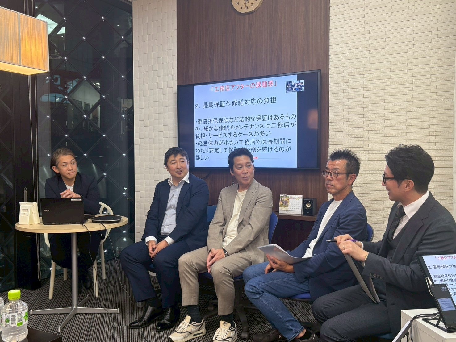 当日は、各社の強みや現在注力しているサービス、事業背景にある業界の課題などをそれぞれ紹介した後、点検からリフォーム・塗装受注などへの紹介に繋がるスキームや、OB客の囲い込み・関係の再構築などの方策、アフターメンテナンスを担う人材育成のコツ、アフターメンテナンスの内製化・利益化、外注化それぞれのメリットやデメリット、今後のアフター事業の在り方など、多岐にわたるテーマでトークを展開。