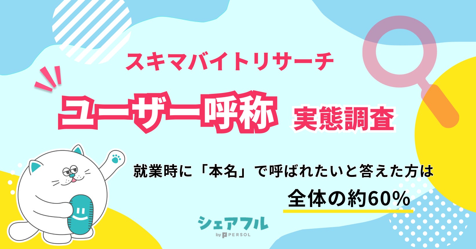 「はたらいて、笑おう。」をビジョンに掲げるパーソルグループのスキマバイトアプリ『シェアフル』やSaaSシフト管理サービス『シェアフルシフト』、就業実績を活用した人材紹介サービス『シェアフルエージェント』などを提供するシェアフル株式会社(本社:東京都港区、代表取締役社長:横井 聡)は、『シェアフル』ユーザーを対象に、就業時のユーザーの呼称に関する実態調査を実施しました。