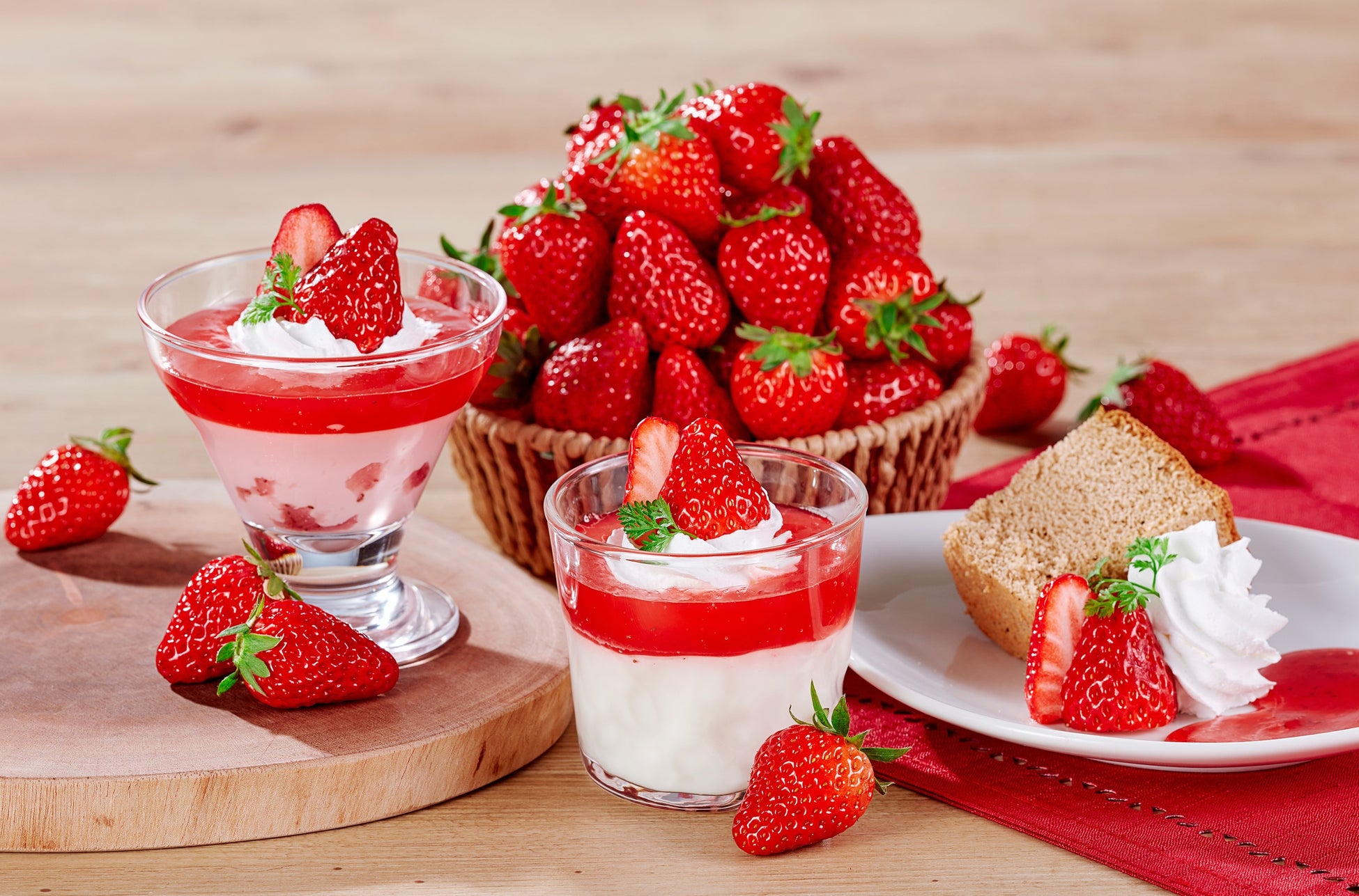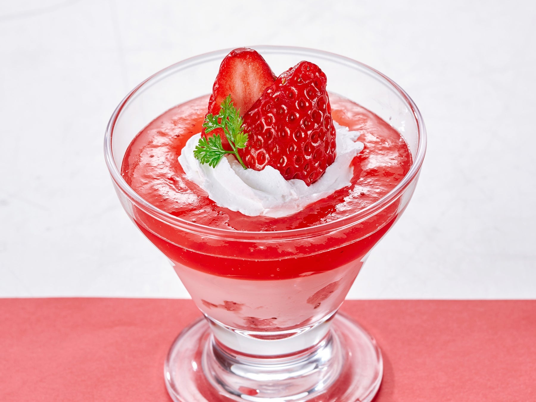 あまおうのジュレとなめらかプリンのマッチングでいちごの風味が口いっぱいに広がります。