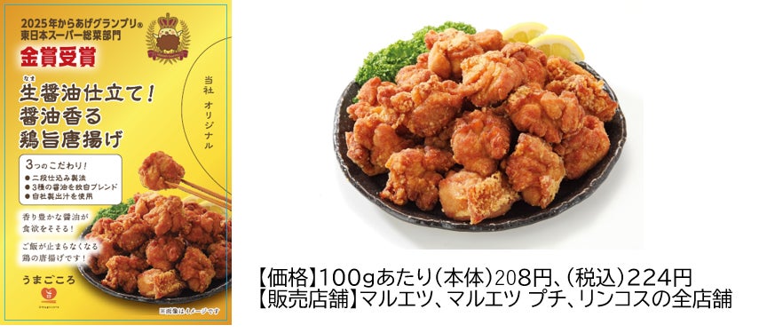 マルエツの「生(なま)醤油仕立て!醤油香る鶏旨唐揚げ」が「第16回からあげグランプリ🄬 東日本スーパー総菜部門」で【金賞】を受賞
