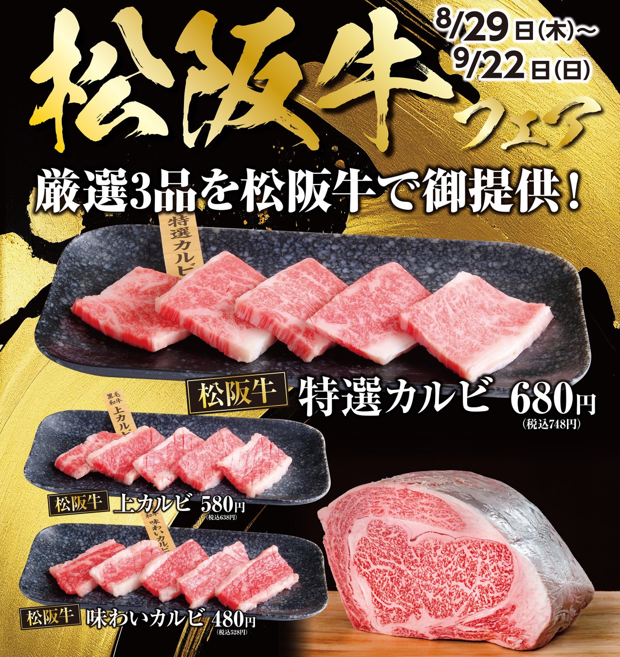 【あみやき亭(中部)】あの『松阪牛フェア』が、好評につき、「あみやき亭堀越店」と「あみやき亭松阪店」でも開催決定!