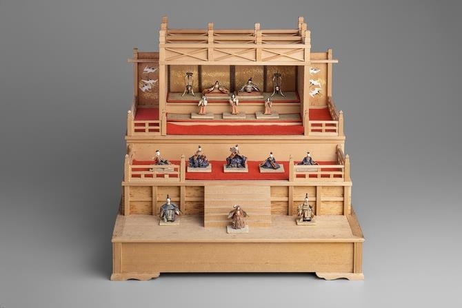 本展では、雛人形の最も古い様式である立雛から、寛永雛、享保雛、古今雛、有職雛、次郎左衛門雛など、江戸時代に生まれた雛人形の多様な様式をすべて名品で揃え、その変遷を紹介します。また、当時高級品であったガラスや紫檀で緻密に作られた雛道具、近代に入り、人形の芸術的価値を高める運動がなされるなかで、人形作家により作られた創作的な雛人形なども展示します。
