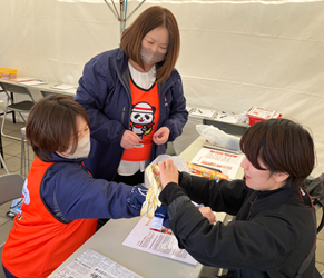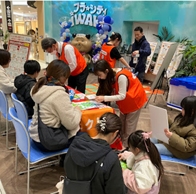 ワークショップでは、福島大学災害ボランティアセンターと共同開発したオリジナルの防災リュックを完成させるパズルゲーム「防災リュックを考えよう」や防災の知恵や技を身につけることができる「防災カードゲームシャッフル」、災害でケガをしてしまった時に身の回りにあるものを活用してできる応急手当を学ぶ「身の回りの物で応急手当」、地震や津波が起こったときに取るべき行動について体を使って覚える「防災紙芝居ちちんぷいぷい」等を行い、約340人の方にご参加いただきました。