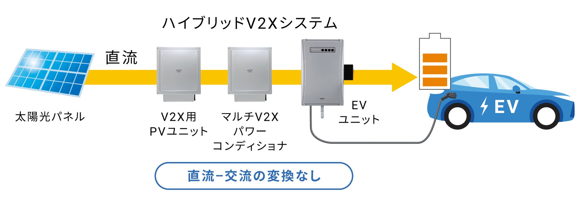 <ハイブリッドV2Xシステム>変換ロスがなく、太陽光発電の電力を最大限活用
