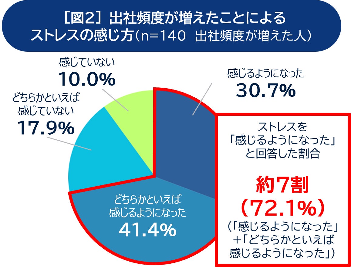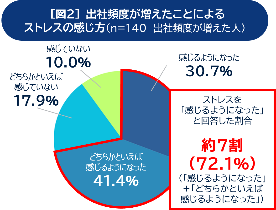 ◆出社頻度が増えた人のうち、約7割(72.1%)が、「ストレスを感じるようになった」と回答。