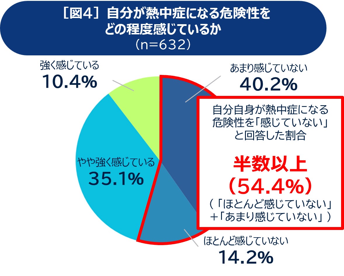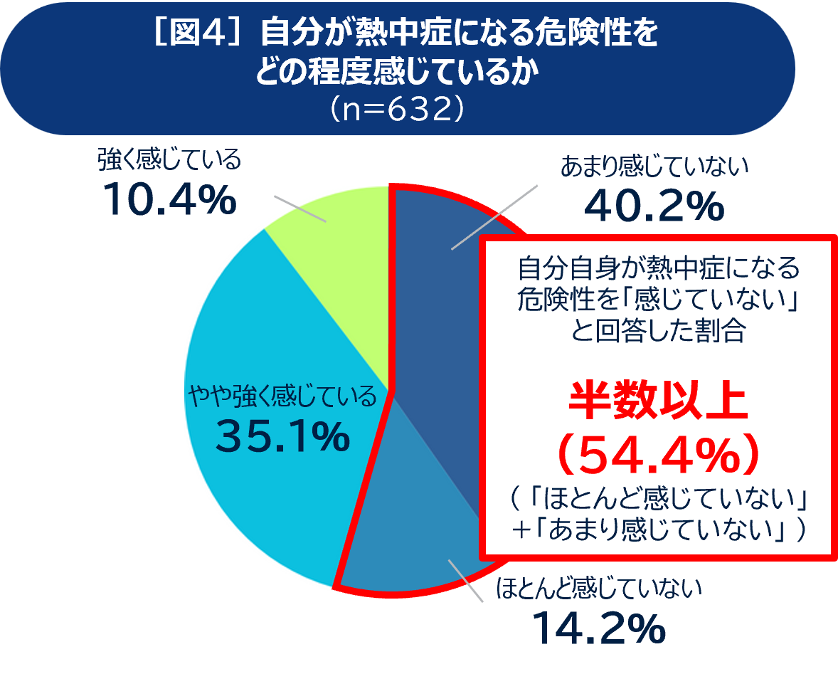 ◆半数以上(54.4%)が、自分自身が熱中症になる危険性を「感じていない」と回答。