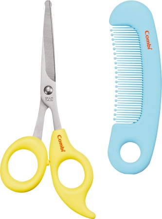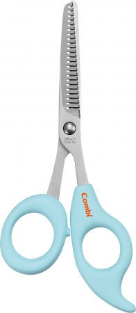 そんな中、新製品のヘアカットグッズとして、刃の先端だけではなくクシの歯の先端も丸く安心な「さんぱつバサミ&クシセット」、 髪の毛を切りすぎずに動きのある自然な毛先にしやすい、細かいV 字形状刃の「すきバサミ」ができました。デザイン・安全設計にもこだわりぬいており、はじめての赤ちゃんのヘアカットをサポートします。