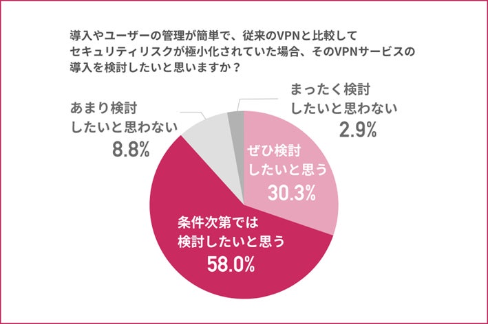 約9割が「従来よりセキュリティリスクを低減し、管理が容易なVPNがあれば導入を検討したい」と回答