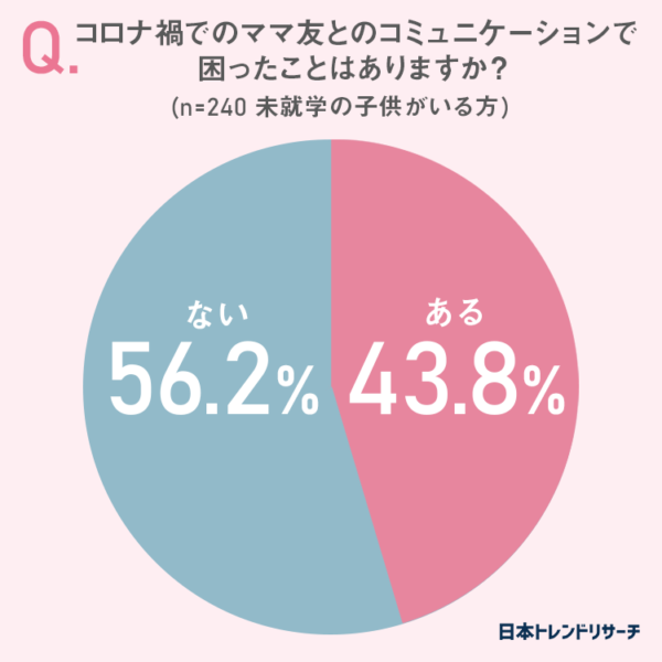 - コロナ禍で大切な「子育て情報」がキャッチできない!未就学児ママの43.8%がママ友とのコミュニケーションに悩みあり