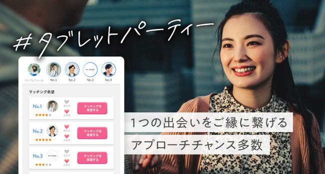 カードスタイルのパーティーやタブレットを使用する最新式のパーティーなど、ダブルマッチング形式を採用しており、1つの出会いで複数回アプローチチャンスがあります。