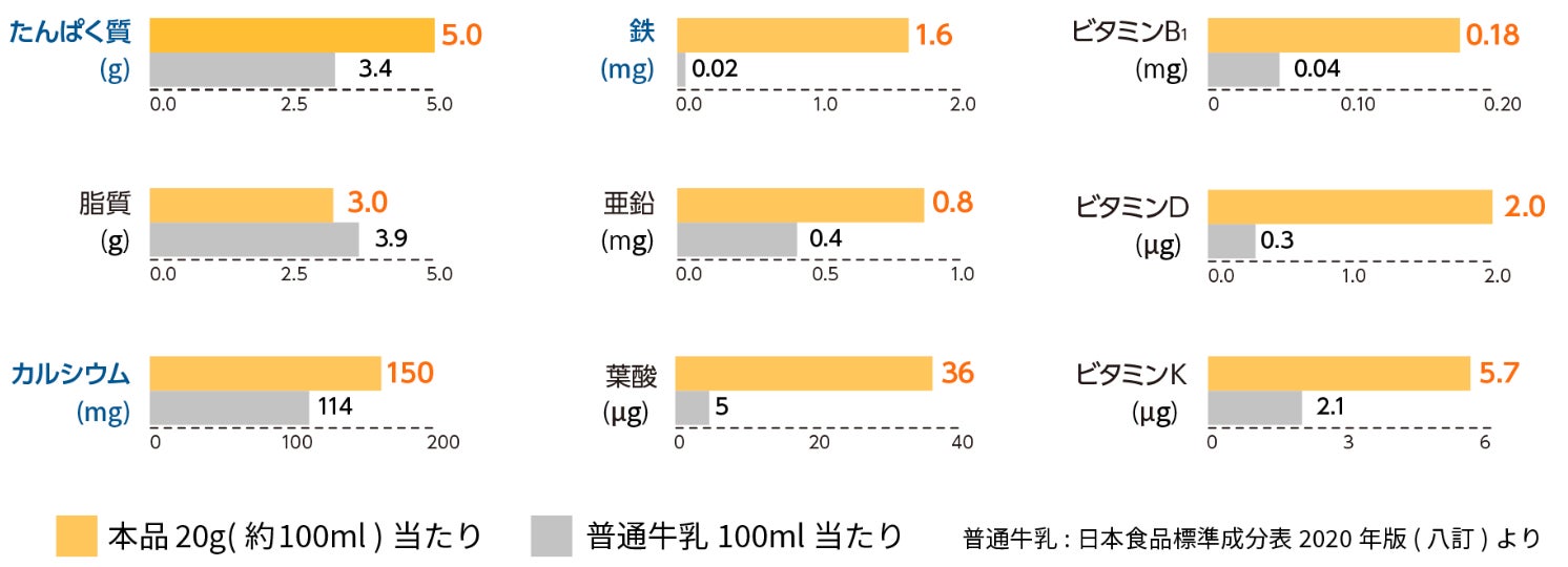 カルシウムの吸収を促進するビタミンDを加えて、不足しがちな栄養素をしっかり補い、栄養バランスをサポートします。
