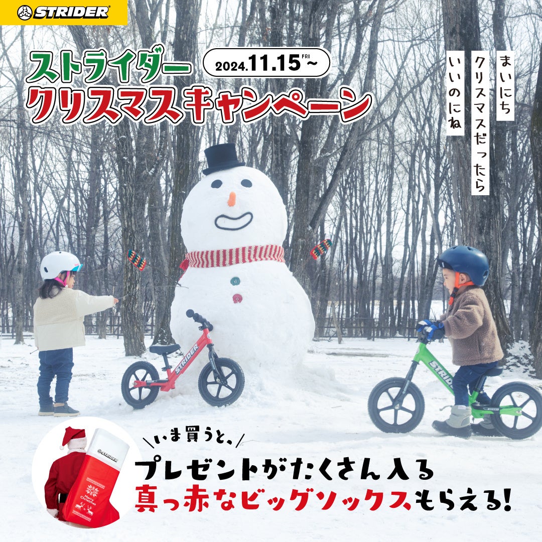 世界累計販売台数400万台のランニングバイク「ストライダー」を日本国内で販売するストライダージャパンでは毎年恒例となっているクリスマスキャンペーンを今年も開催します。