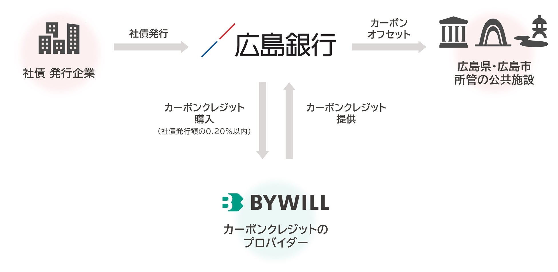 日本全国47都道府県のカーボンニュートラル実現を目指す株式会社バイウィル(本社:東京都中央区、代表取締役CEO:下村 雄一郎、以下「バイウィル」)は、株式会社広島銀行(本店:広島県広島市、代表取締役頭取:清宗 一男、以下「広島銀行」)が2024年1月16日(火)に取り扱いを開始する「〈ひろぎん〉カーボンオフセット型私募債」を、カーボンクレジットのプロバイダーとして支援することをお知らせします。