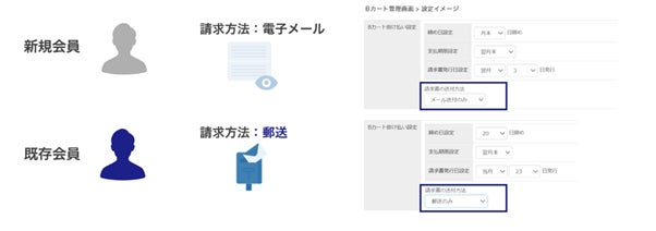 『Bカート掛け払い』では、インボイス制度に標準対応しています。買い手に、インボイス制度に対応した請求書をメールや郵送にて送付することが可能となっています。