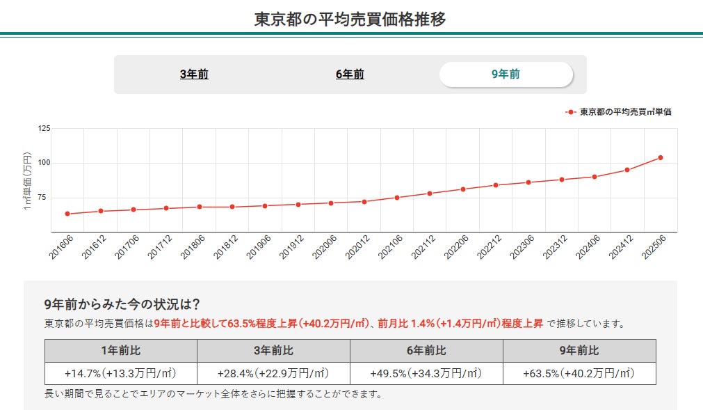 2.東京都全体のマンション価格は9年間で約64%上昇し、堅調な上昇トレンドが継続