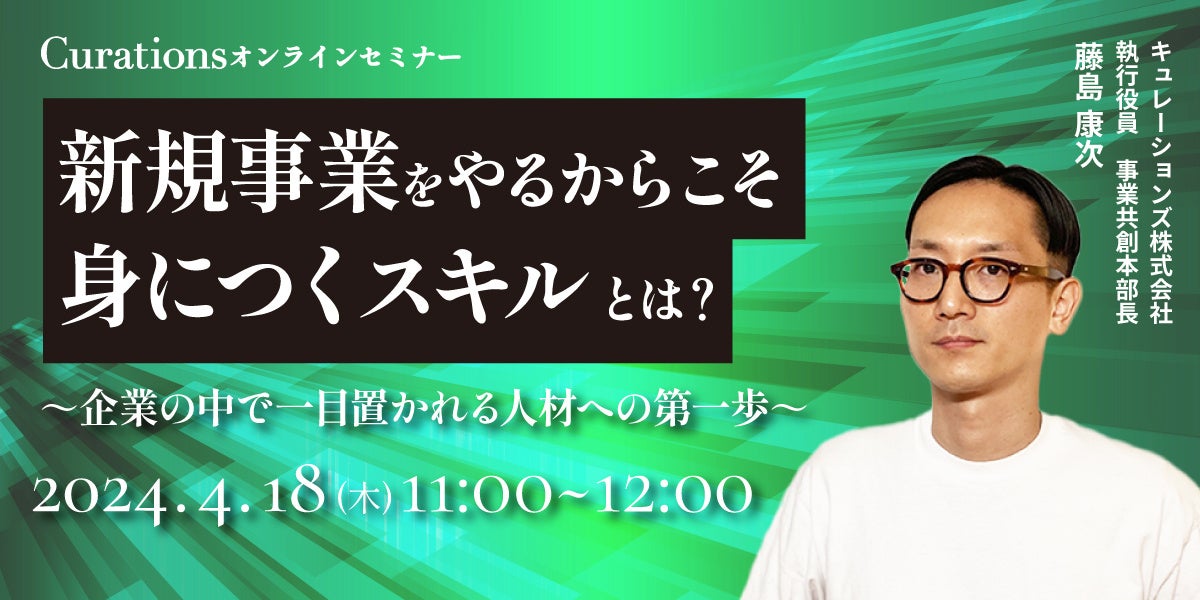 顧客企業のビジネス変革を成功に導くキュレーションズ株式会社(本社:東京都渋谷区、代表取締役社長:根本隆之、以下当社)は、『新規事業をやるからこそ身につくスキルとは?~企業の中で一目置かれる人材への第一歩~』を2024年4月18日(木)に開催いたします。