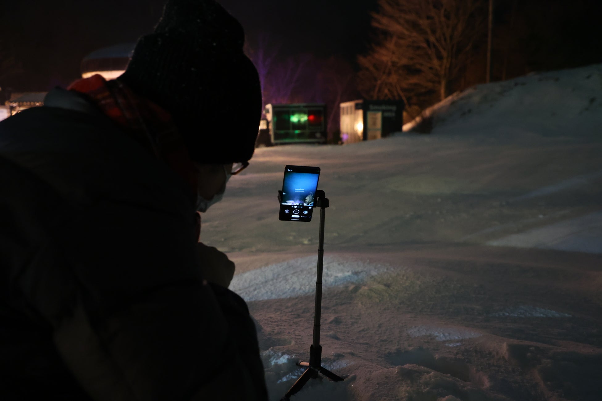 雪原に三脚を立て、「Google Pixel」天体写真機能で星空撮影にチャレンジ!